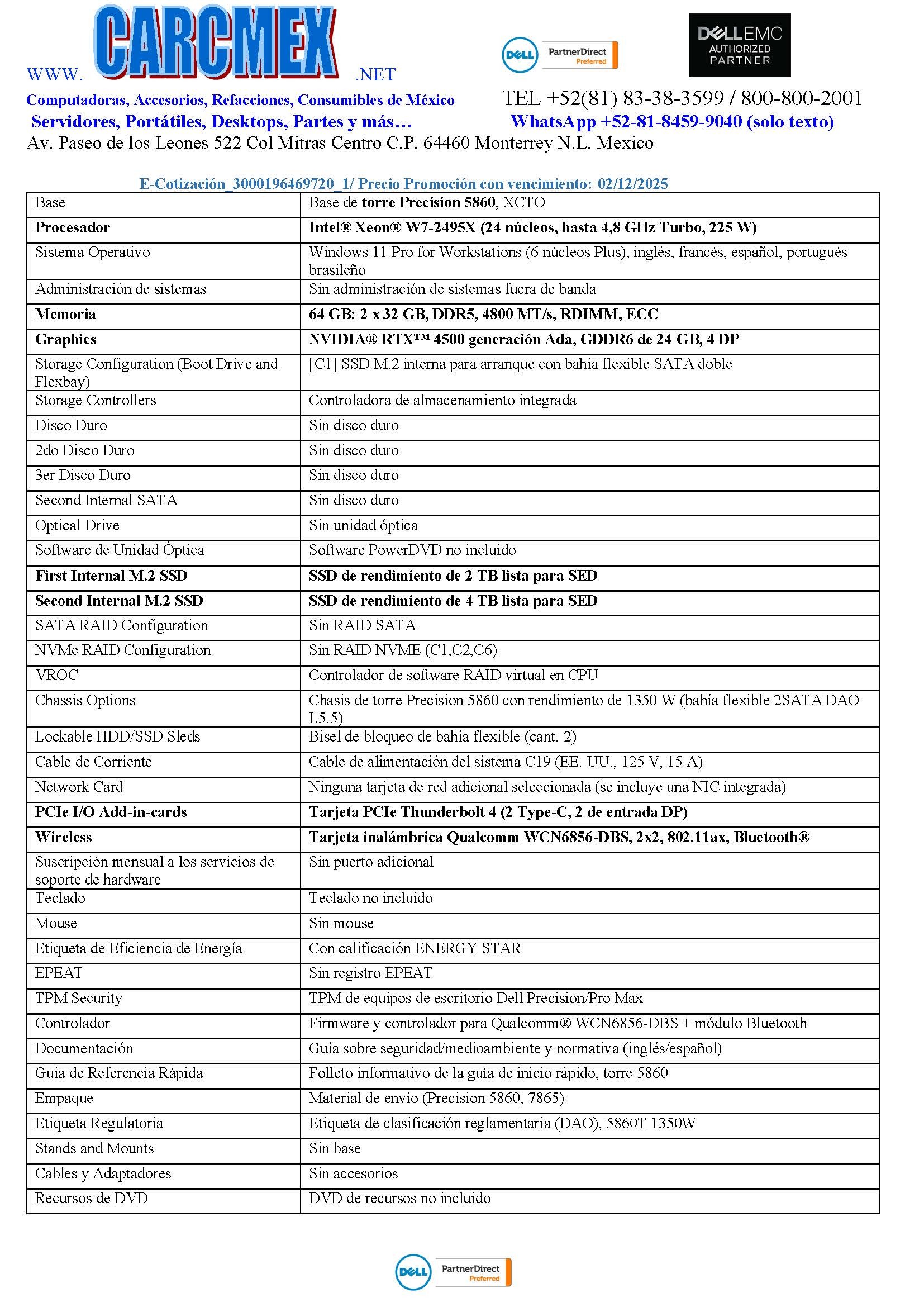 Especificaciones Tecnicas